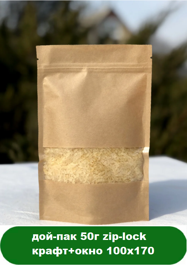 ДОЙ ПАК 100x170х30 крафт вікно (50г) + ZIP LOCK
